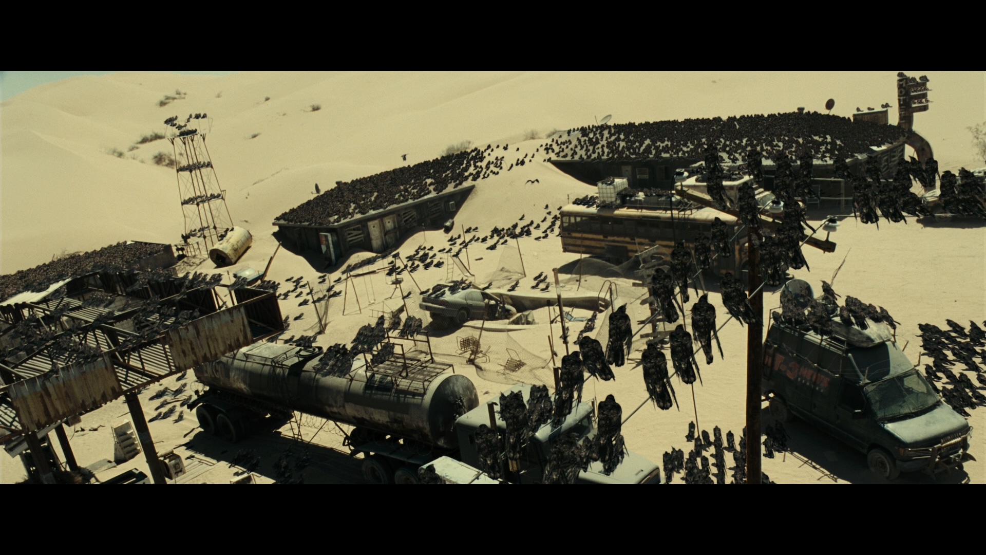 이 시대 제일 귀한 것이 먹을 것과 기름과 '담배'다 얼마 남지 않은 사람들이 인적이 드문 주유소나 식료품 가게는 털어갔고 남은 것은 이 장면들처럼 죽지 못해 떠도는 좀비들이 주유소나 식료품점 어디든 숨어있다가 희생양을 찾고 있다. 그나마 인프라가 좀 조성된 대도시는 좀비 소굴이기에 함부로 접근할 수가 없다.