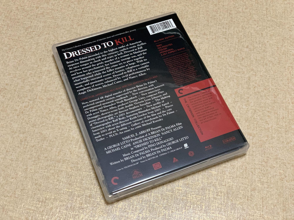 - 이번 블루레이 타이틀은 크라이테리언 콜렉션의 "드레스드 투 킬(Vestida para matar, Dressed To Kill, 1980)"다. 아마존에서 구입했고 한글자막은 지원하지 않는다.
