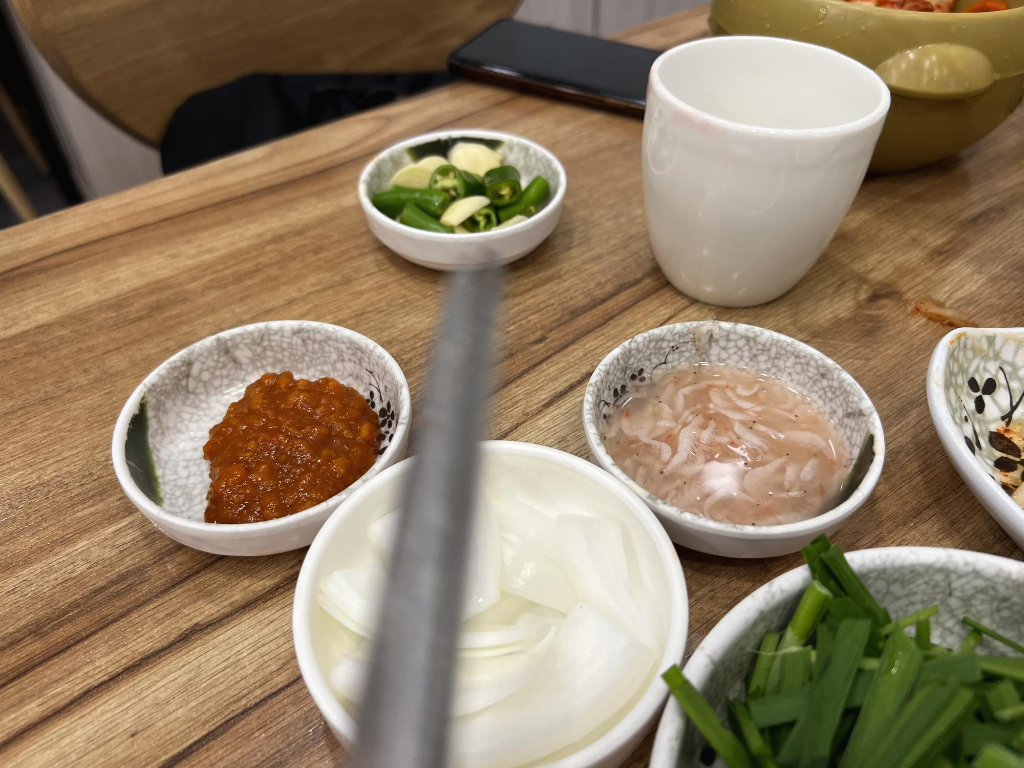 기본 반찬들... 여기 좀 내 스타일 중에 하나가 다진 청량고추가 따로 들깨가루처럼 있다는 것이다. 취향에 맞게 순대국에 넣어 먹을 수 있도록 말이다. 뭐 한통을 다 넣어 먹을 정도로 매운걸 좋아하는 나는 이 시스템이 너무 좋다(따로 부탁을 안해도 되니 말이다.) 참고로 석박지는 여자 친구 입맛에 맞았지만(약간 맛이 강하지 않고 시원한 느낌) 나는 쏘쏘...