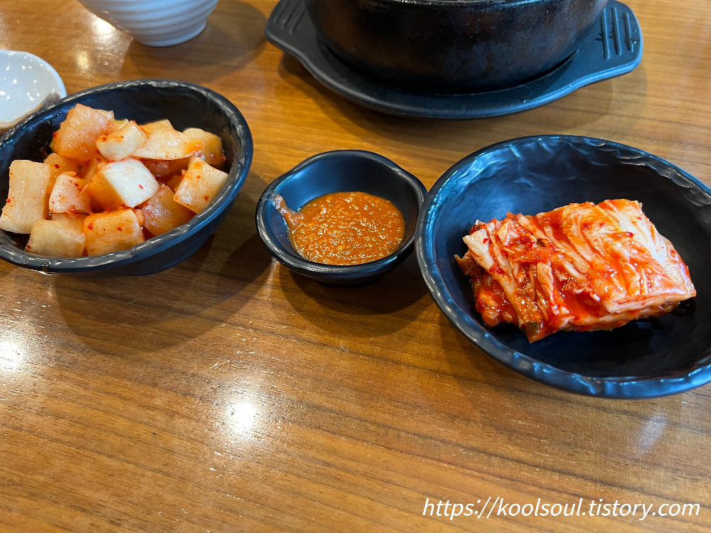 기본 반찬들... 여기는 다른 순대국집이랑은 좀 다른게 기본적으로 주는 청양고추와 양파가 없었다... 근데 쌈장은 왜 주신거지? 까먹었는지 뭔지는 모르겠지만 썬 청양고추는 요청해서 받은 것이다.
