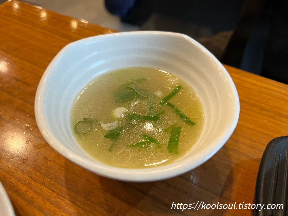 여자친구가 시킨 제육돌솥밥과 같이 나온 국물(뭔 먹어봤는데 국물인지는 잘 모르겠다.)