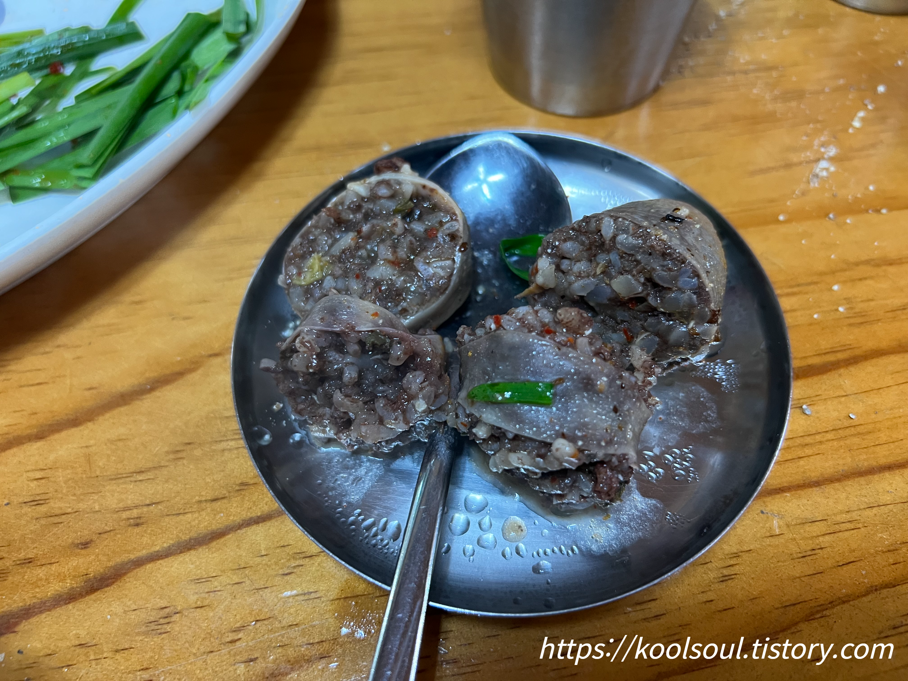 순대국. 찹쌀순대와 곱창으로 구성되어있다. 다른 머릿고기나, 살코기는 없다. 국물맛 끝내줬다.
