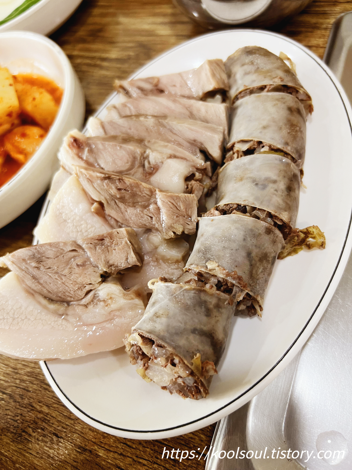 일반 순대와 더덕 순대 이렇게 두 종류의 순대가 들어가 있다. 보통 정식을 시키면 순대국양이나 고기의 양이 좀 적은 곳이 많던데 여긴 그냥 그런거 없이 일반으로 주는 것 같다. 양이 많았다.