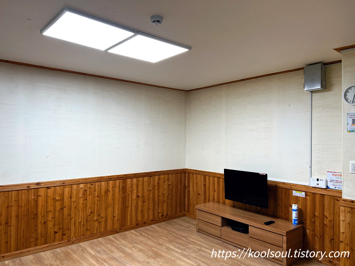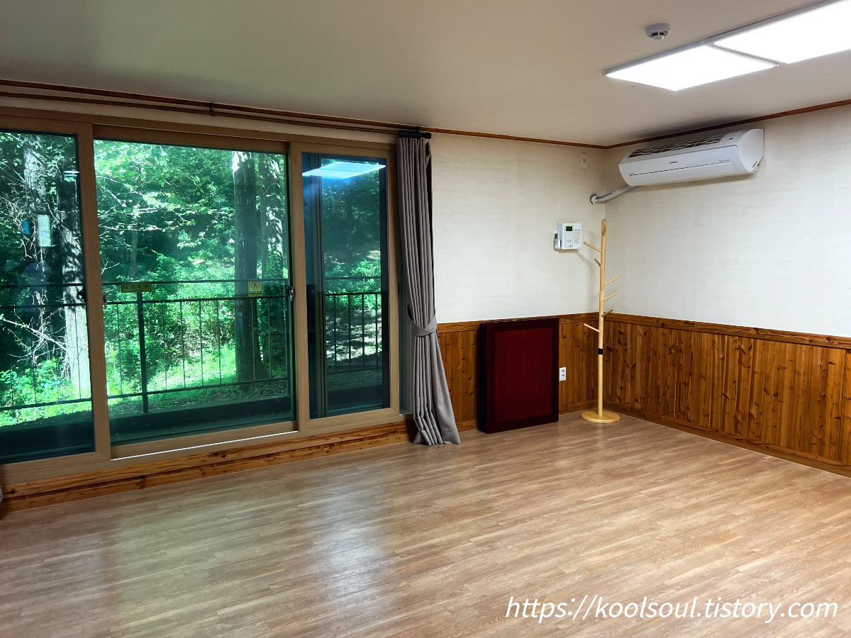 한가지 좀 살짝 아쉬운 점이 있다면, 벽지가 좀 오래된 느낌이고 산 속이라 습한 기운이 많이 든다는 것이다. 민감한 사람들에게는 좀 불편함을 느낄 수 있을 정도지만 무던한 사람들에겐 크게 문제가 되지 않을 것 같다는 생각을 해 본다.(휴향관은 어떨지 궁금하네...)