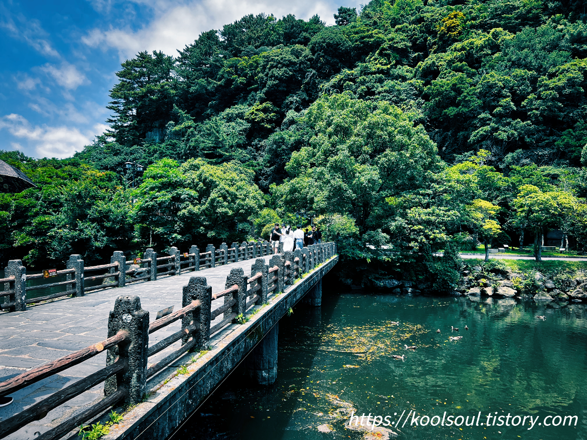 지난 6월(벌써 시간이 많이 지났네) 다녀왔던 제주도 여행. 천지연폭포를 다녀왔다. 옛날 아주 옛날에 다녀간 이후 두번째 방문이다. 날씨를 걱정했지만 그래도 해가 뜬 맑은 날이어서 다행이다.