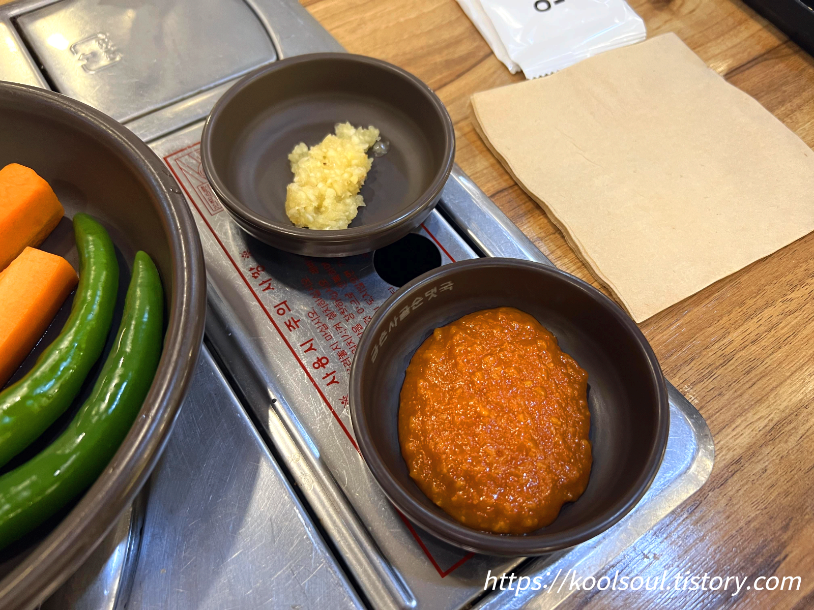 기본 반찬들. 특이하게 여기는 다진 마늘을 준다. 이거 마음에 들었다.