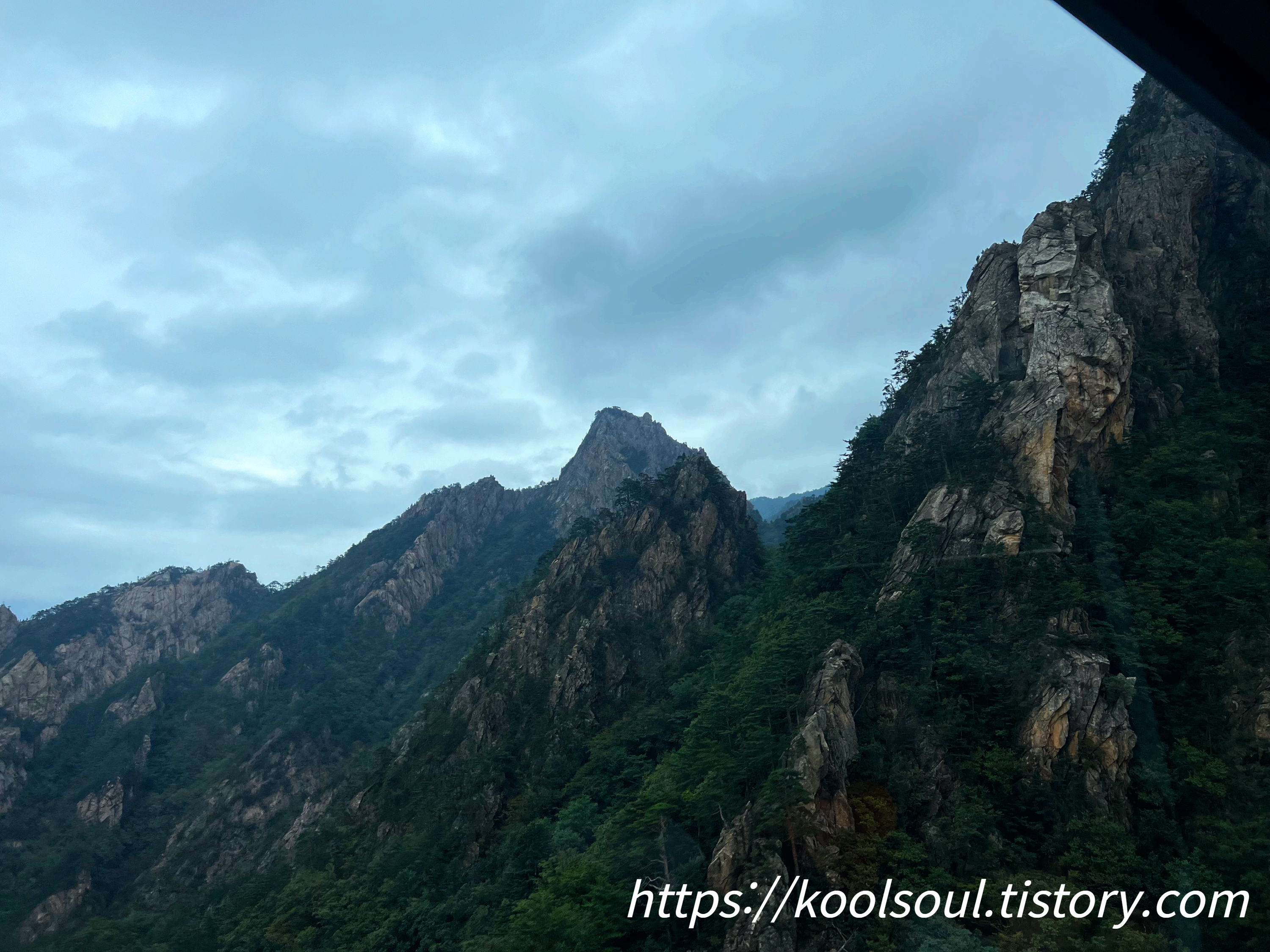 창밖으로 보이는 기암괴석들. 예전에 설악산 등산을 하다 제대로 데인적인 있어 좀 안 좋은 기억이 있었는데 케이블카로 경치를 보니 탄성만 나온다. 작은 땅덩이에도 이런 곳들이 존재하는구나...