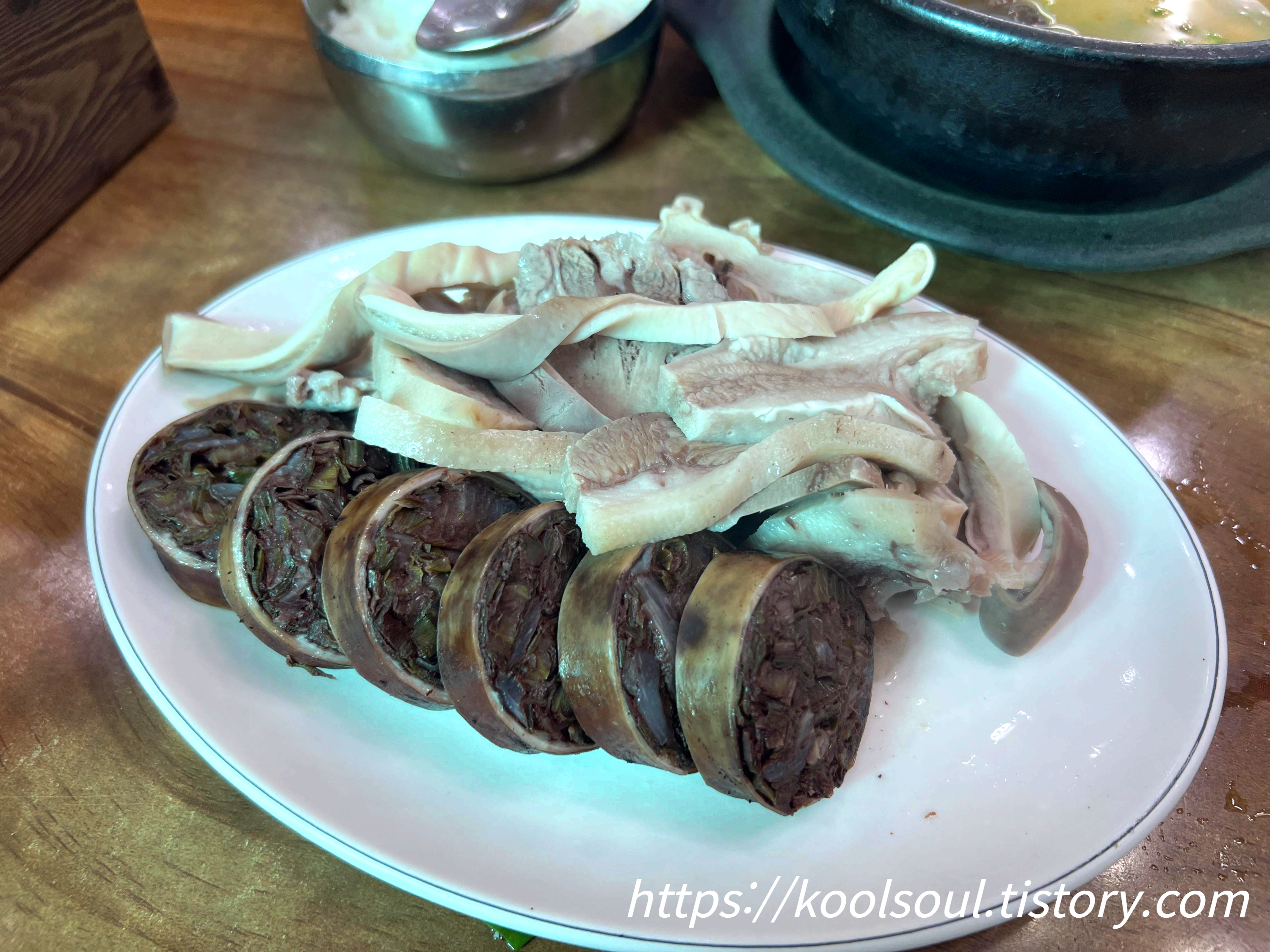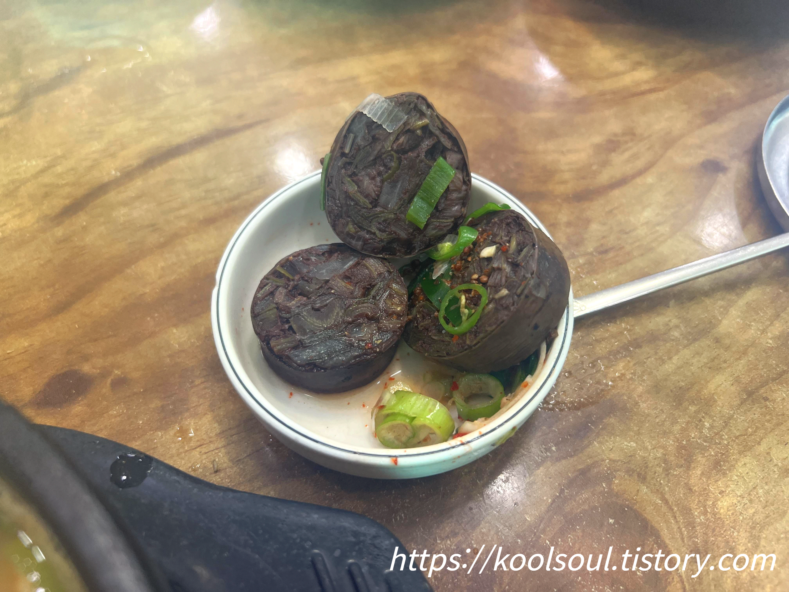 아마 여기의 특별한 점은 저 순대가 아닐까 한다. 일반 순대의 속과는 완전 다르다. 시래기가 들어갔다고들 하는데.. 식감도 특이하고 맛도 특이하다. 일반적으로 순대국집에서 먹는 순대에 익숙한 사람이라면 호불호가 있을 듯