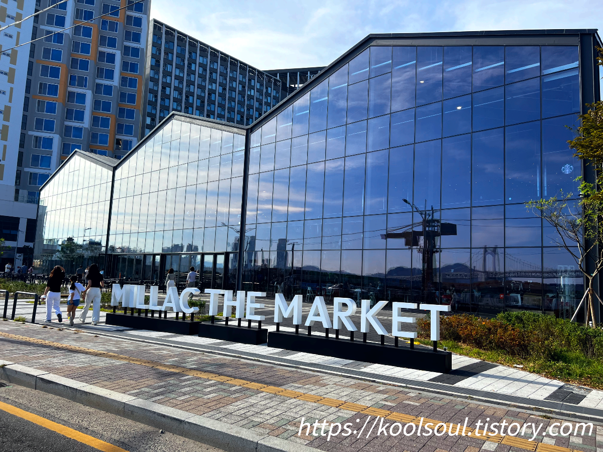 민락 더 마켓. 건물이 특이하고 이쁘게 생겨서 한 번 찍어봤다. 상가, 아케이드로 나오던데... 규모가 엄청 컸다. 저기 스타벅스도 보이네. 광안리 해수욕장이 안 보이는 거 보니 더위와 힘듦에 정신이 나가 찍지를 않았던 것같다.