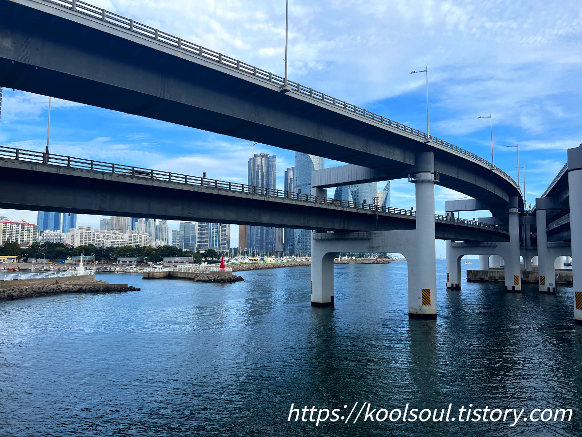 삼익비치타운아파트 옆에 있는 산책길이란 느낌보다는 운동장 트랙 같은 곳에서 본 광안대교. 지금도 날씨가 이상하지만 이때가 10월임에도 한여름 같이 너무 뜨겁고 더웠다.