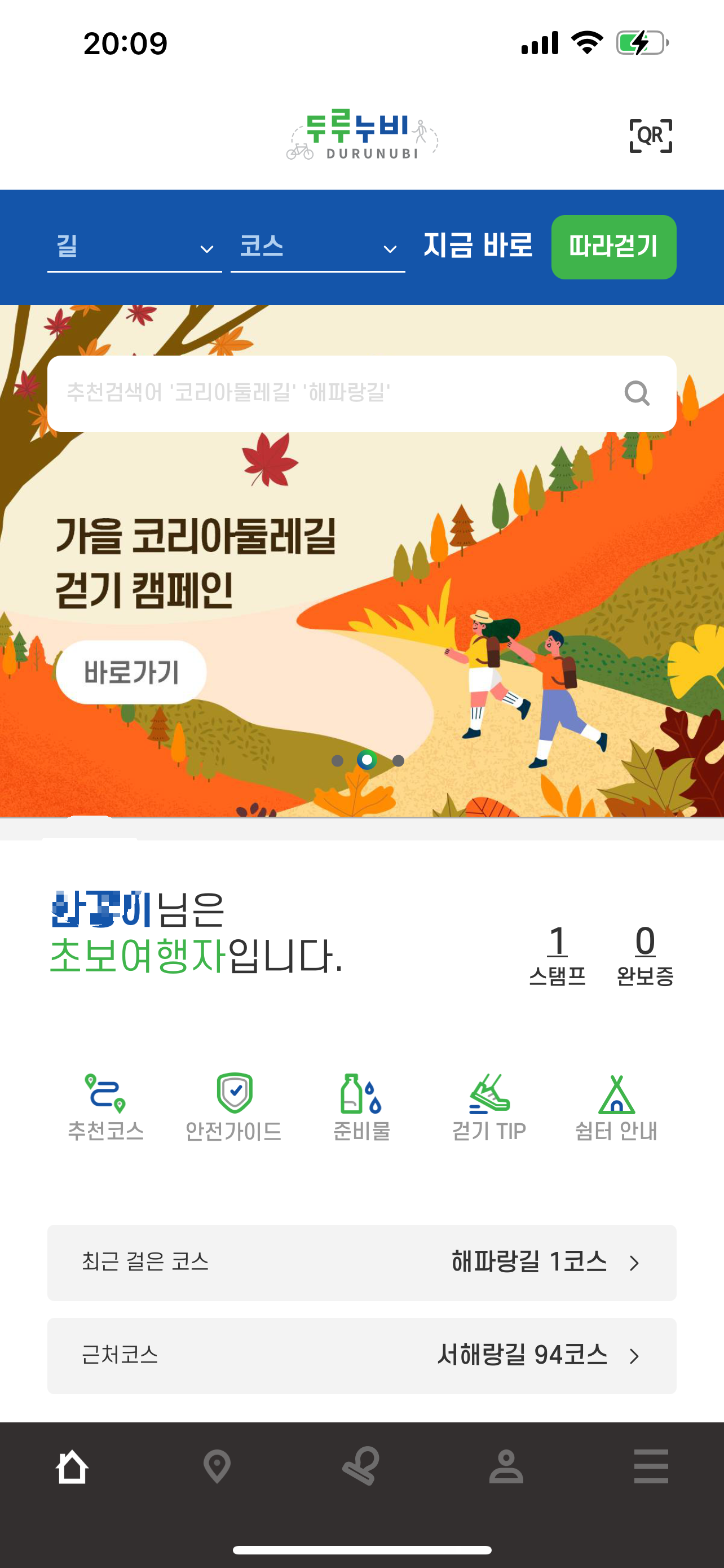 두루누비라는 어플이다. 정말 편리하다. 서해랑, 남파랑, 해파랑 코스가 전부 다 있다.