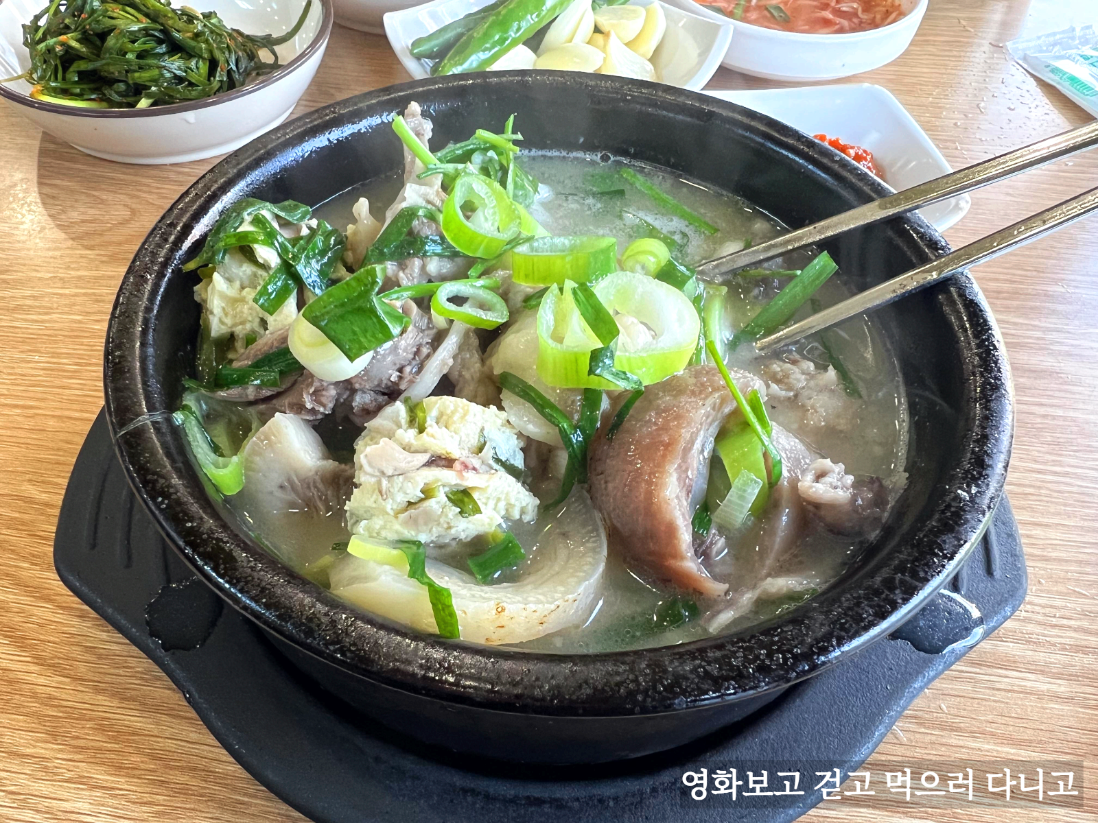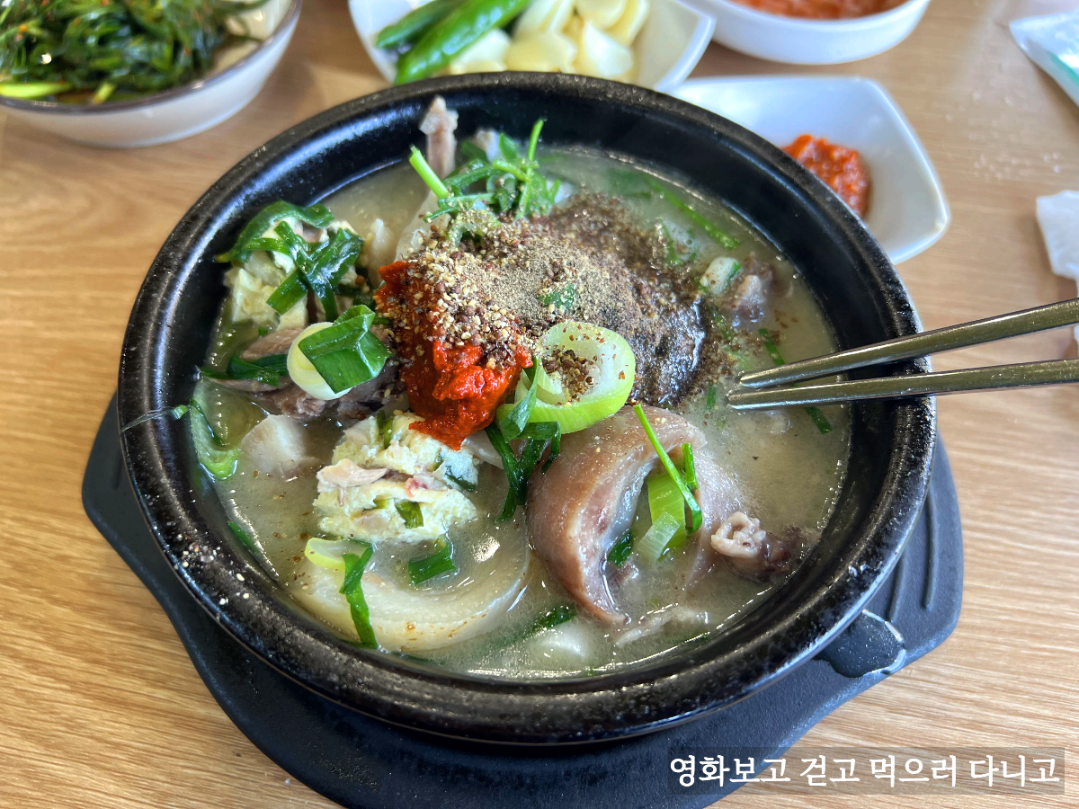 드디어 나온 순대국! 여기 순대국집의 특징은 바로 저 일반적이지 않은 순대다. 백순대라고 메뉴판에 있는데, 어떤 맛일까 먹어보니 두부맛도 느껴졌는데 맛이 정말 특이했다.(몇 개 안들어 있는 게 좀 아쉽긴 하지만)