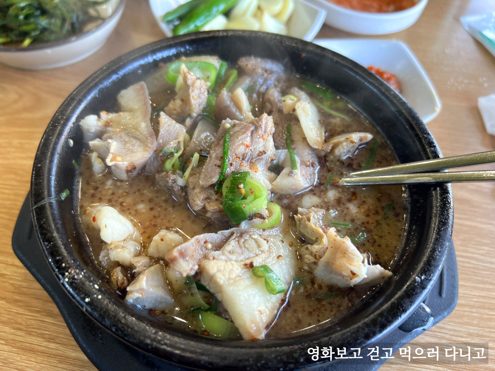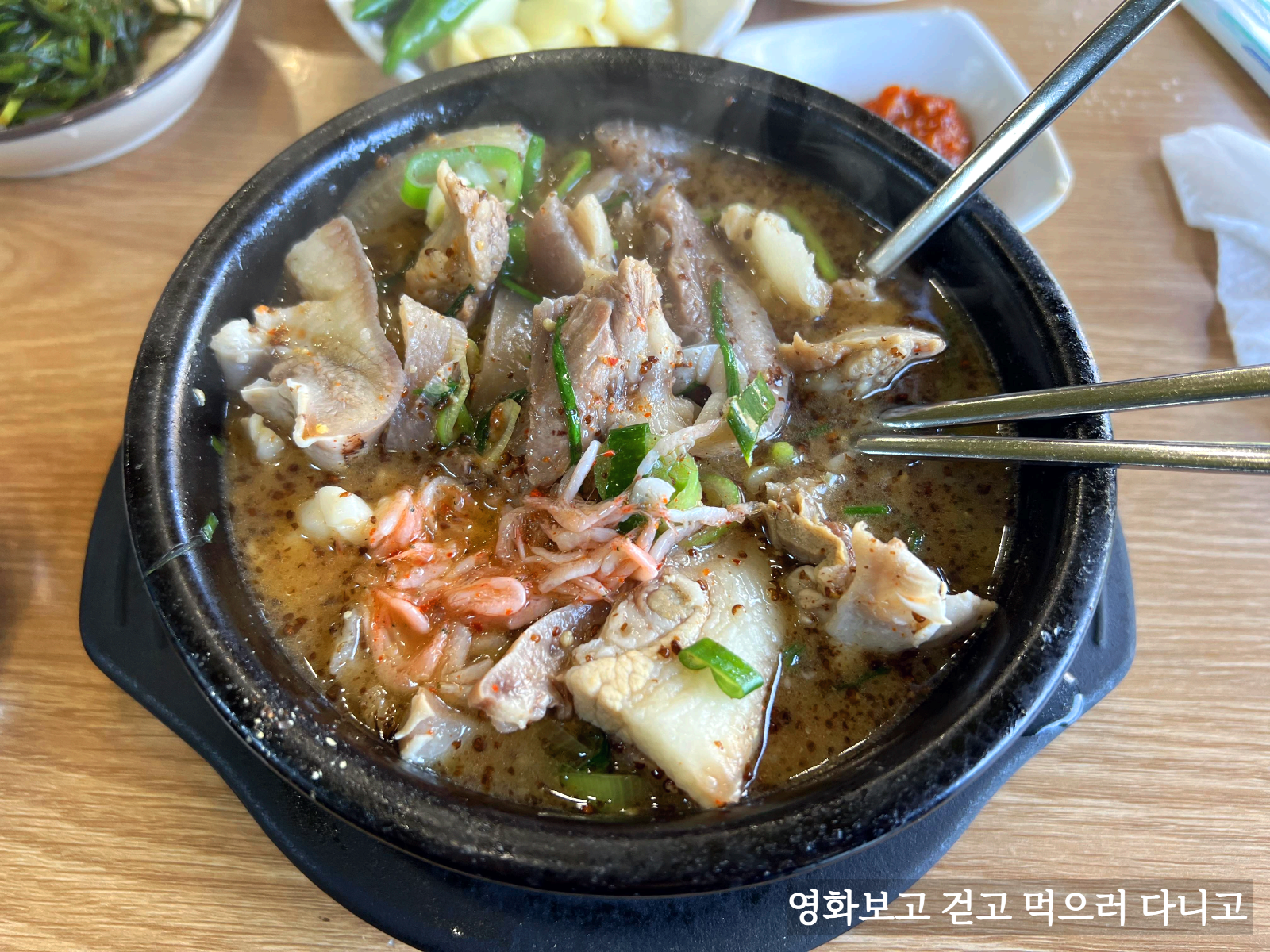 먹다보니 간이 안된 걸 발견하여 긴급 새우젓 투하. 그리고 열심히 먹었다. 이 순대국집의 특징은 순대의 양보다는 고기의 양이 많다는 것이다. 나는 그게 크게 신경쓰이지 않았는데, 아내는 순대가 좀 더 있었으면 하는 마음인거 같았다. 그리고 내장 부위보다는 머릿고기나 간, 고기가 들어가 있는데 비계가 많기 때문에 약간은 어른 스타일의 순대국이라고 할 수 있다. 처음 순대국을 접하는 사람한테 어쩌면 안 맞을수도 있지 않을까 하는 생각이 문득 든다.(나따라 어쩔수 없이 순대국을 먹으러 다니는 아내는 좀 힘들지 않았을까 함ㅠㅠ)