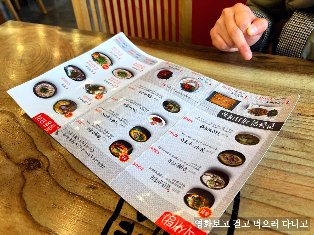 메뉴판. 벽면에 따로 메뉴판이 붙어있진 않고 테이블별로 이렇게 책자로 된 메뉴판이 있다. 메뉴판보고 놀란게 순대국 종류가 정말 많다는 사실. 콩비지, 시래기, 해물... 도전하고 싶은 맘이 크긴 했는데 난 일단 대표 메뉴라는 얼큰순대국을 시키고 아내는 해물순대국을 시켜보기로 했다. 거기에 곁들임으로 아바이순대를 추가 주문했다.