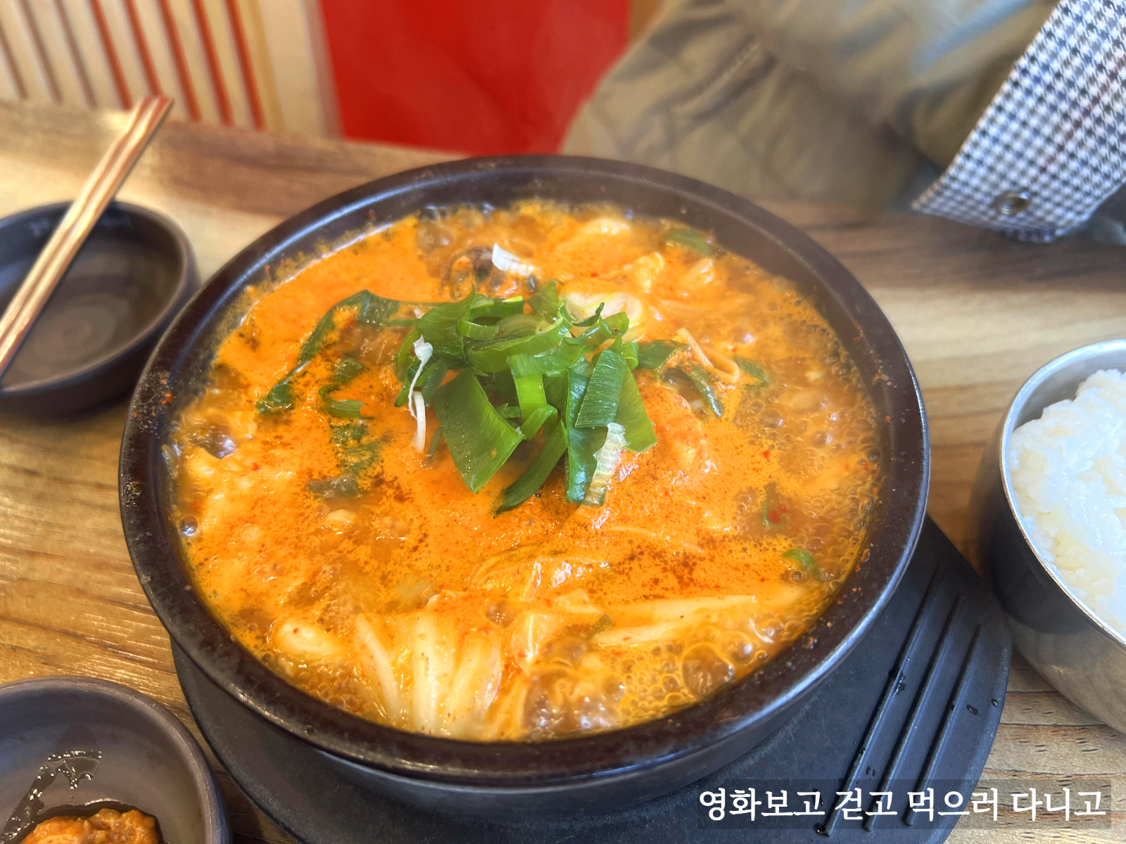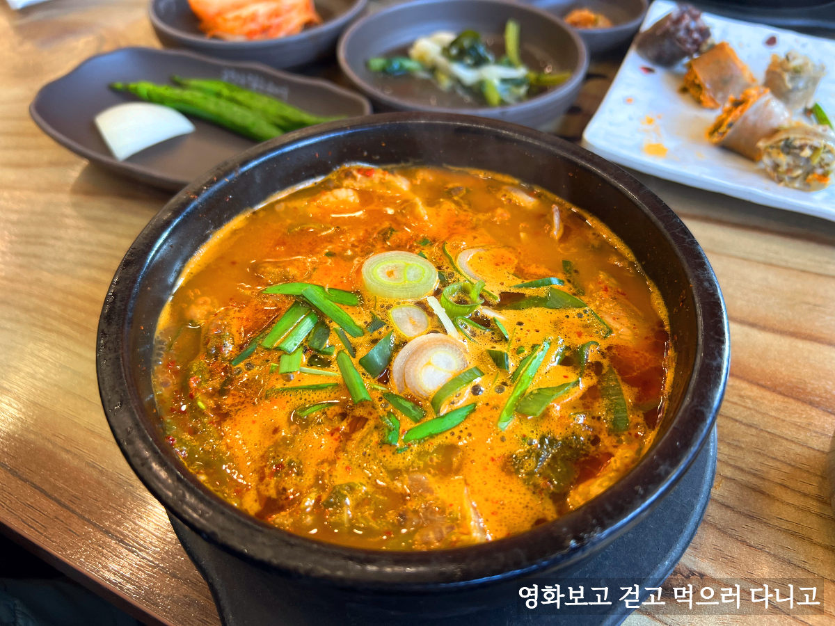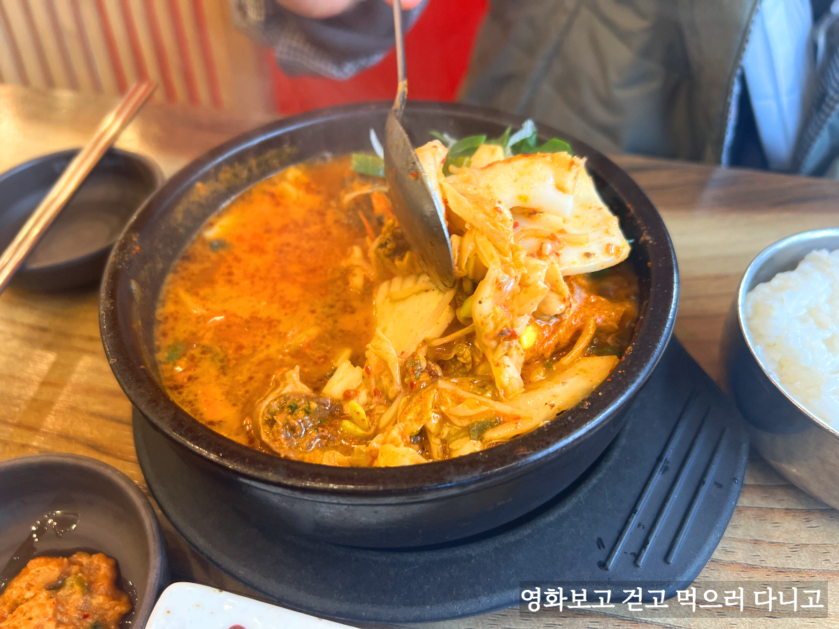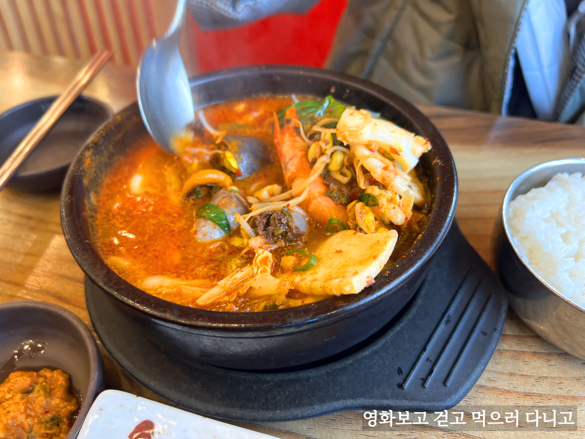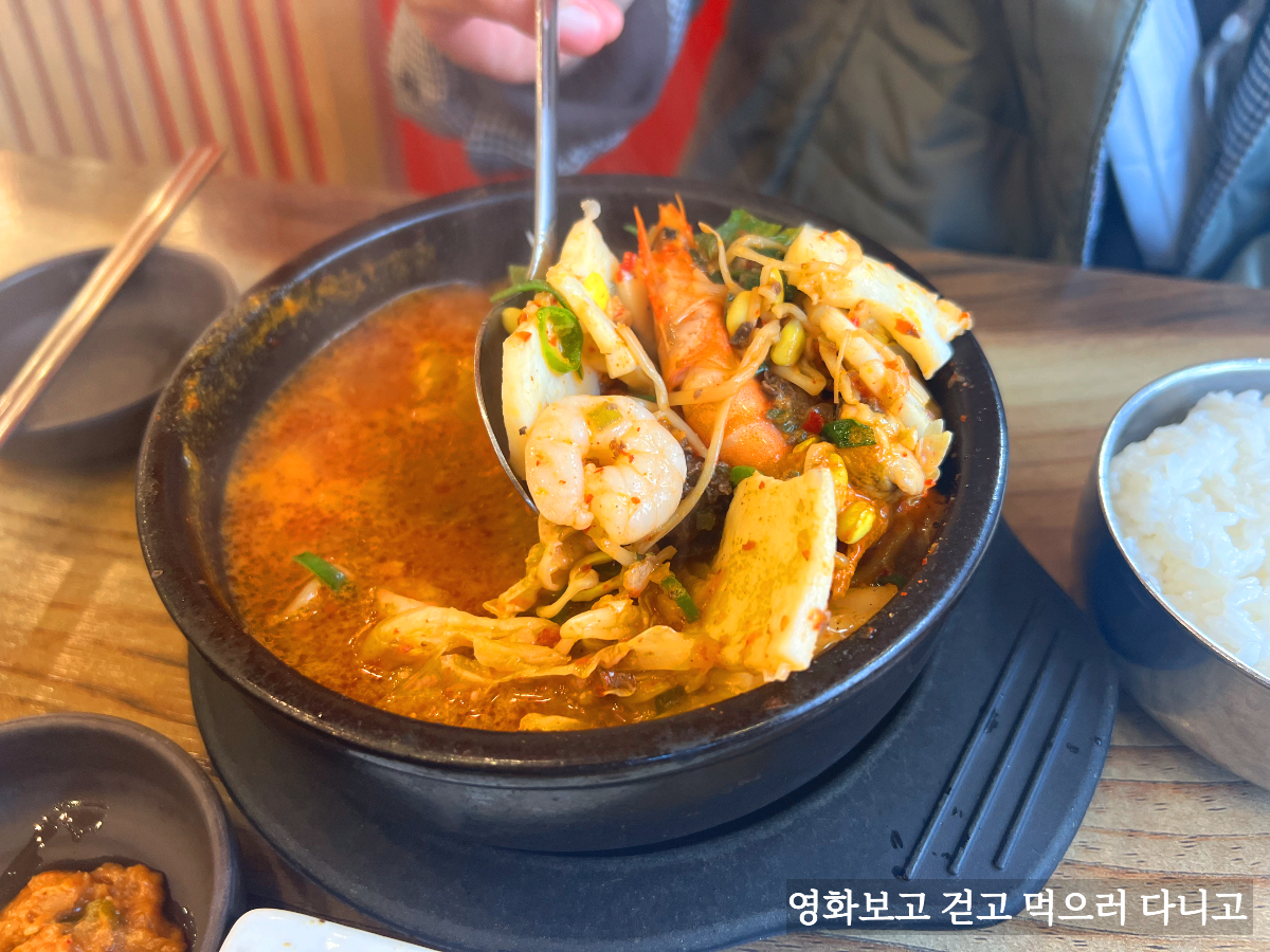 온갖 해물들이 들어있다. 새우, 오징어살, 홍합살 등. 그리고 순대국답게 순대도 들어있고. 국물 맛이 어떤지 너무 궁금해 먹어보니 순두부 느낌이 났다. 해물순두부 말이다. 아내 피셜로 해물순두부와는 또 다른 맛있다고 한다.