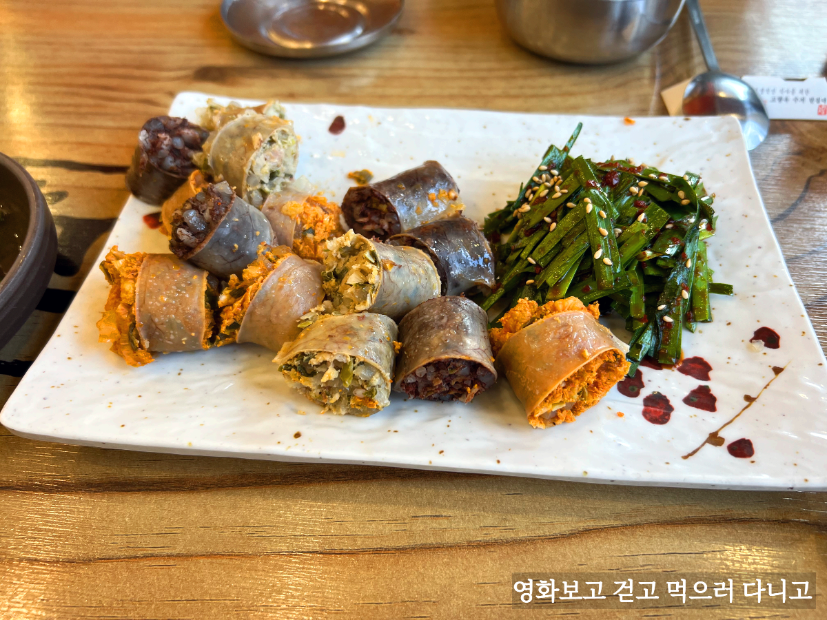 먼저 나온 아바이순대. 부추무침과 같이 먹어봐야겠다.