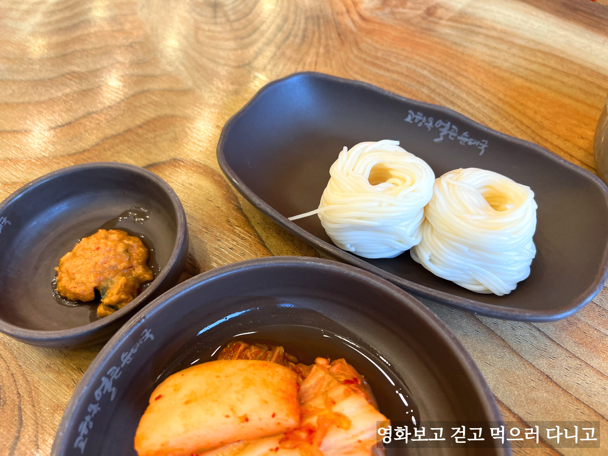국물이 식기 전에 아까 받은 소면을 얼른 투하했다.