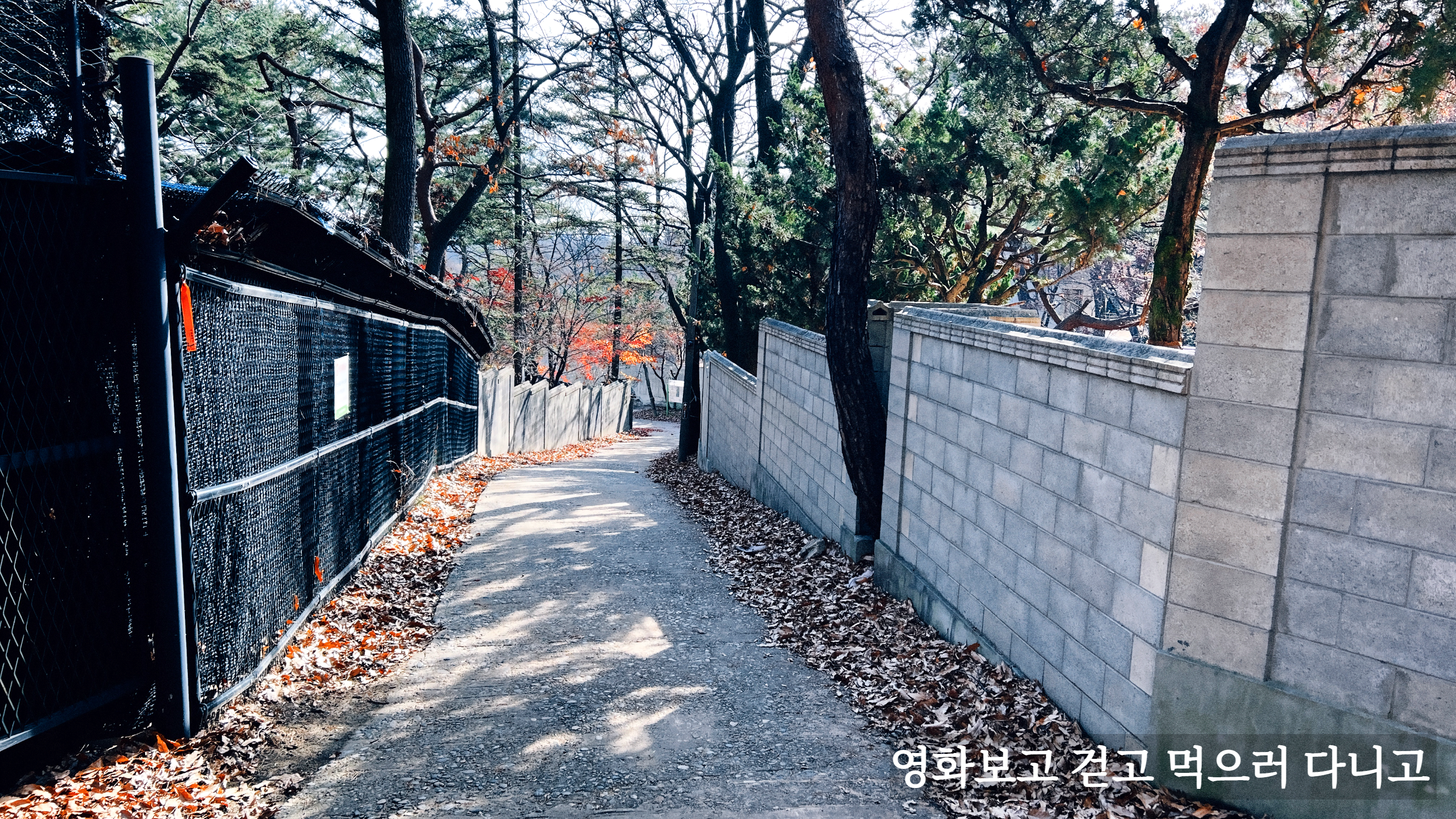 6~7년 전 이 길을 걸을 때 오른쪽 담벼락은 이끼가 가득한 느낌있는 벽이었는데, 그동안 새로운 벽으로 보수했다 보다.