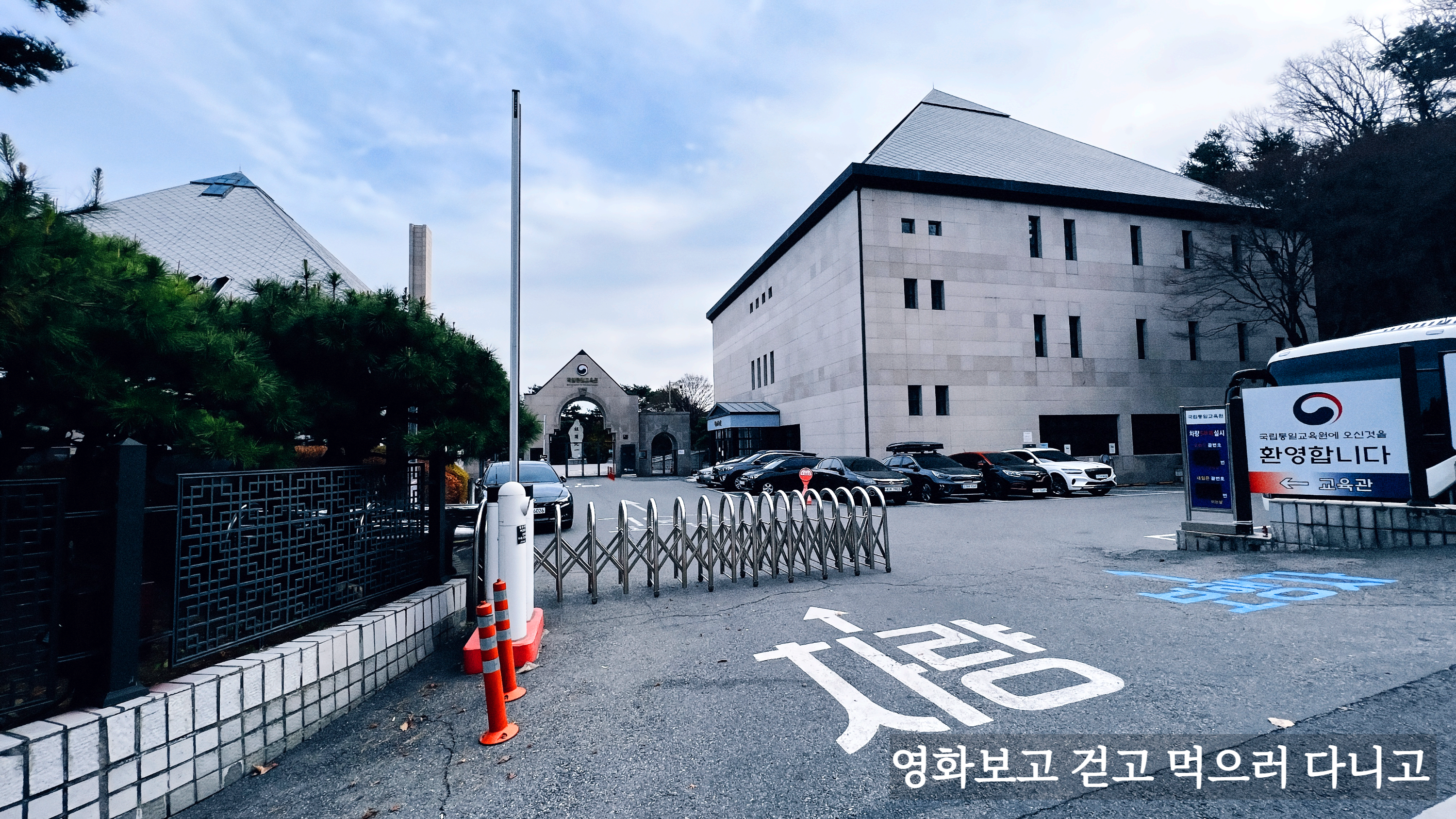 건물디자인이 특이했던 국립통일교육원. 5~6년 전 똑같은 길을 걷던 게 생각이 났다. 교육원 내에 숙소처럼 보였던 더 특이한 건물도 있다.
