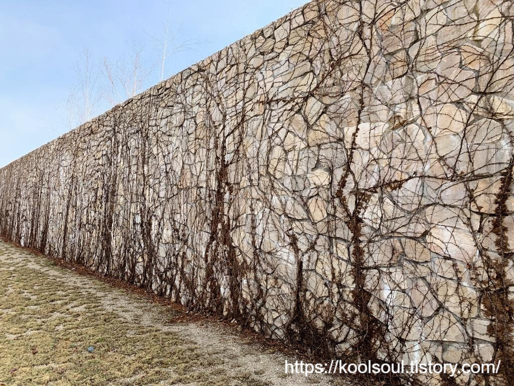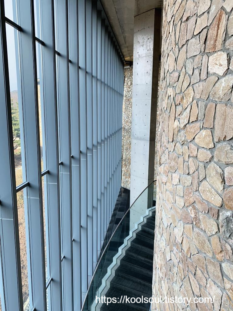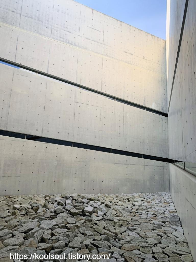 뮤지엄관 앞에 세워진 거대한 조형물. 웅장하다. 겨울이라 안타까웠다는 것이 바로 좌우로 자갈밭이 물로 채워지지 않았다는 것이다. 아마도 동절기 안전 사고나 동파 때문에 퇴수해놓은게 아닐까 짐작하지만, 물이 채워진 모습이 너무 궁금하다. 동절기 워터갤러리의 모습.