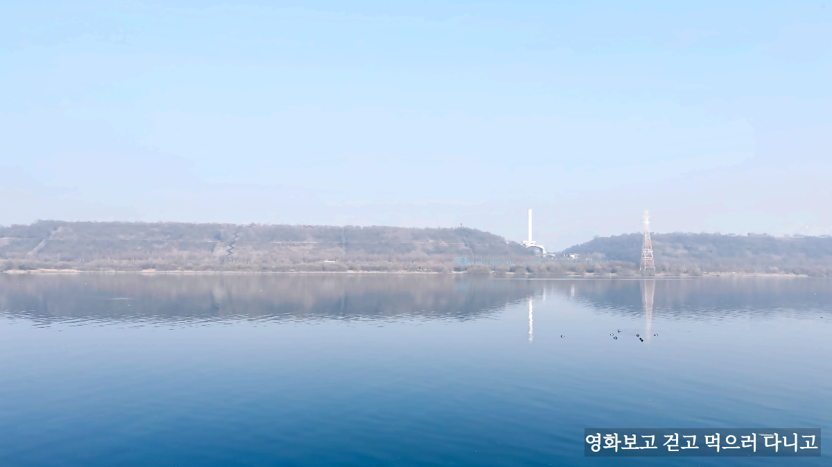 저 뒤에 롯데제과 굴뚝이 보인다. 지금은 가동되지 않는 과자 공장이겠지.. 옛날 느낌이 나는 굴뚝이라 찍어 봄