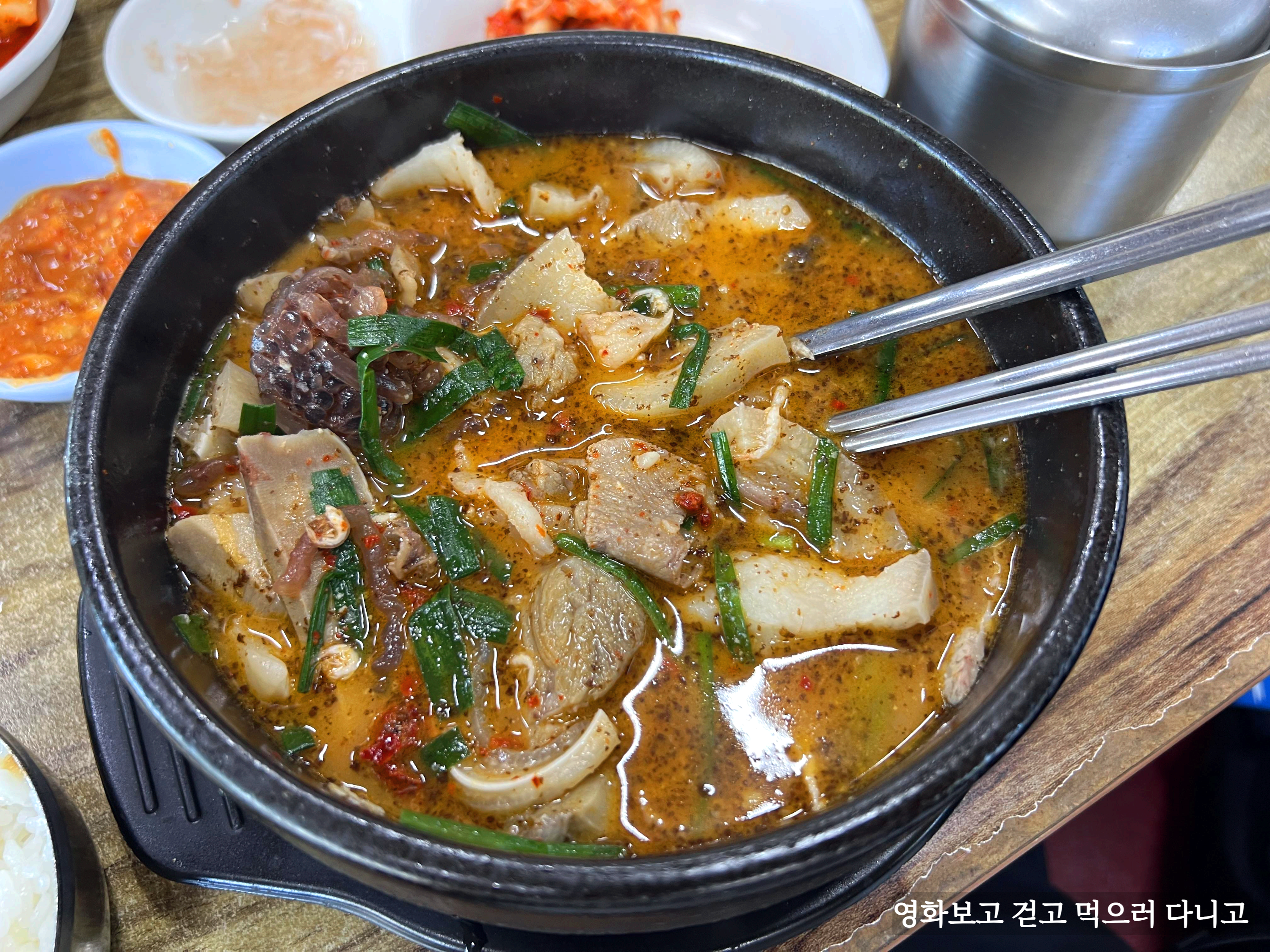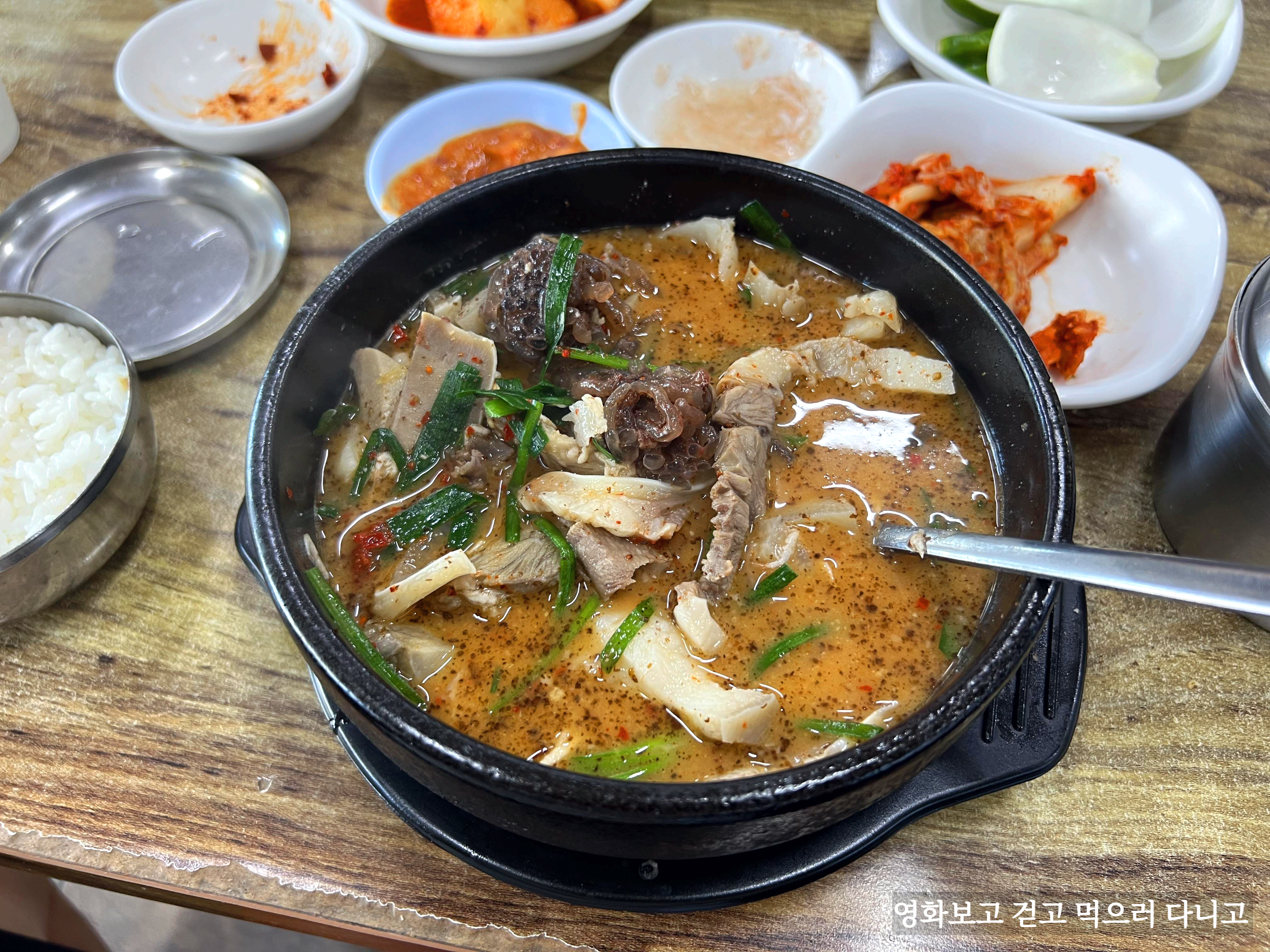 드디어 나온 순대국. 뚝배기의 열기로 보글보글 엄청 끓는다.