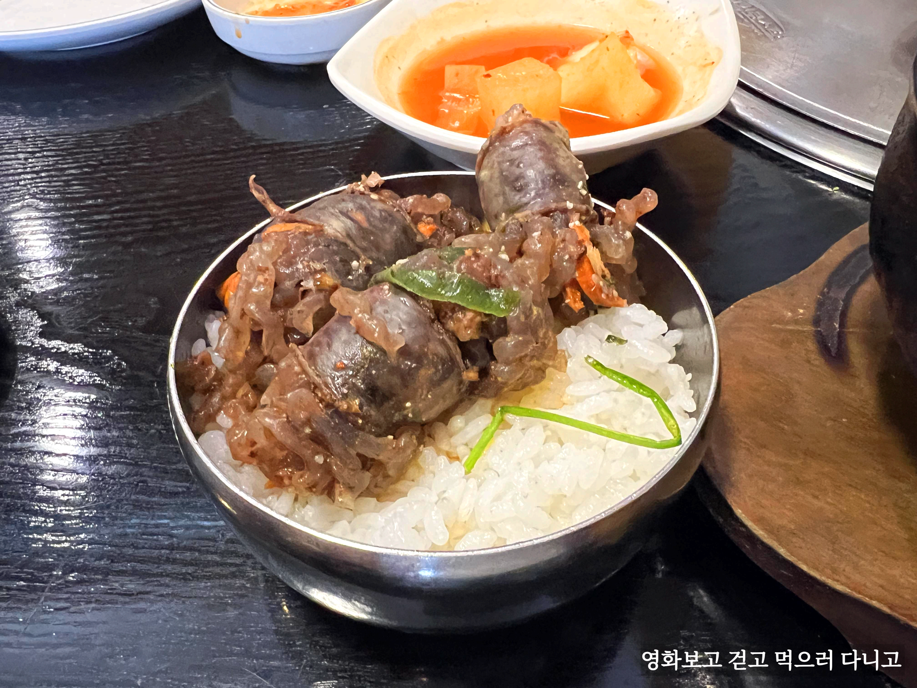 순대가 좀 풀려있긴 했지만 순대의 양이 많아서 크게 문제가 되지는 않았다. 일단 뜨거우니 밥에 올려놓고 식혀서 먹었다.