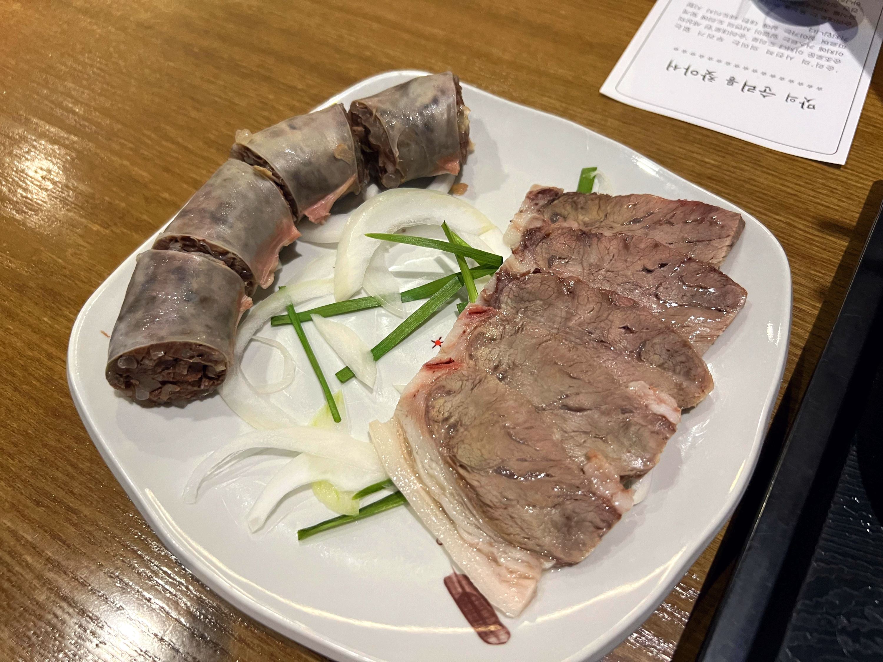 먼저 정식에 나오는 머릿고기와 순대다. 순대맛은 좀 일반적인 순대와는 달랐다. 나름 맛이 좋았다.