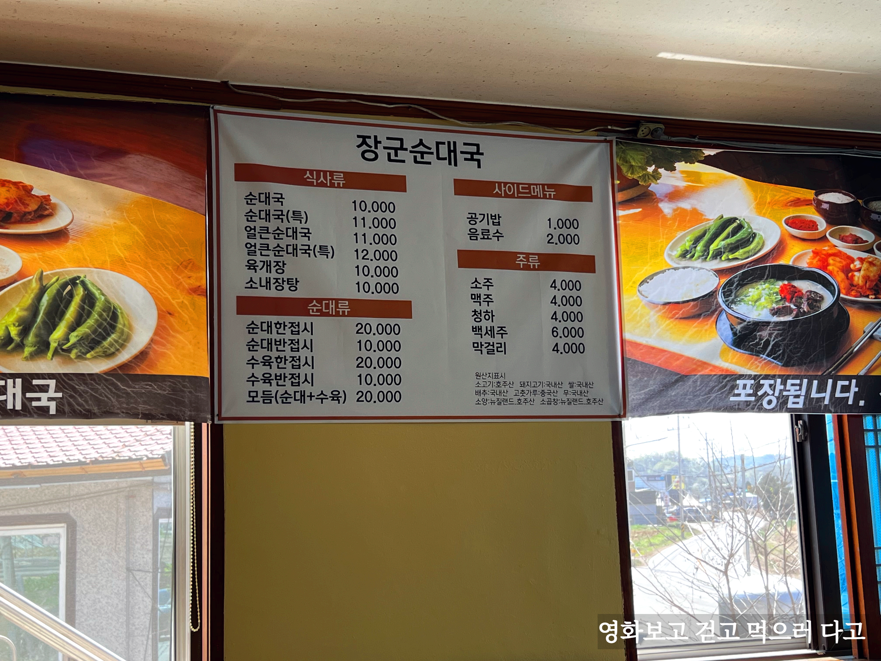 메뉴판이다. 순대국 가격을 보면 파주나 서울이나 크게 차이없어 보이는 금액이다.