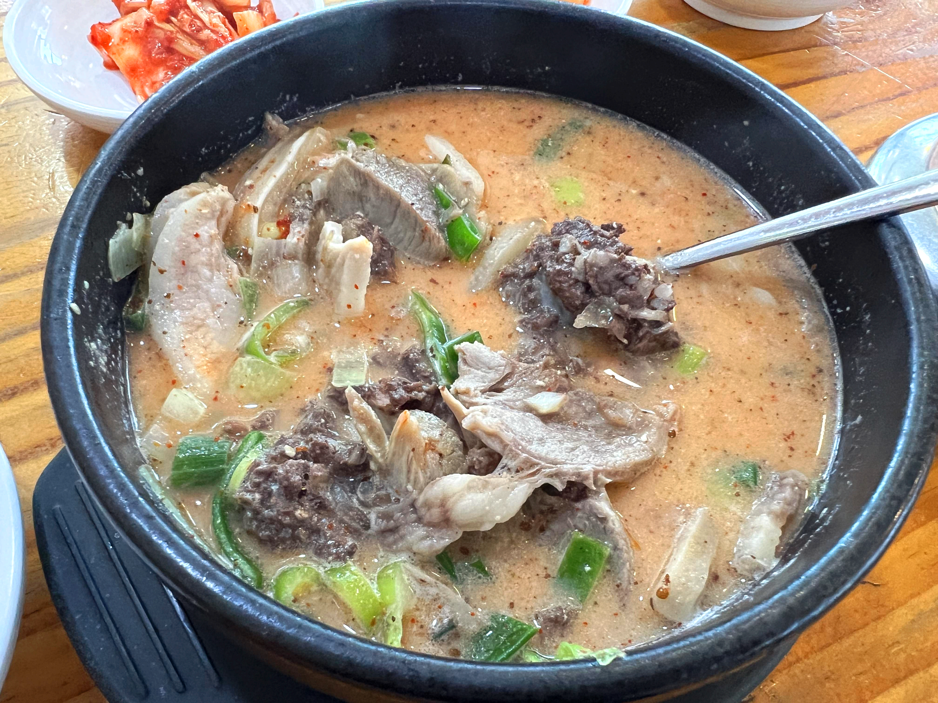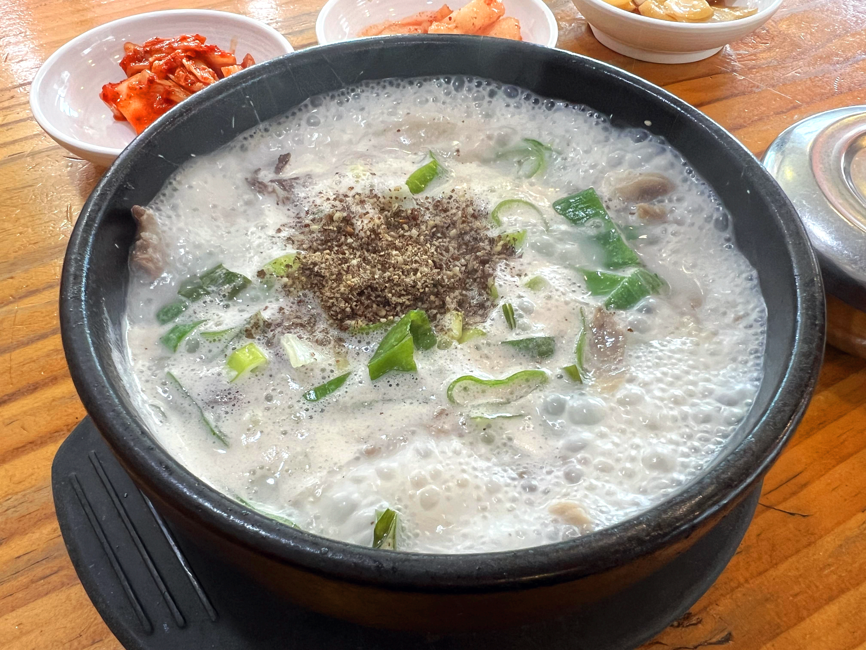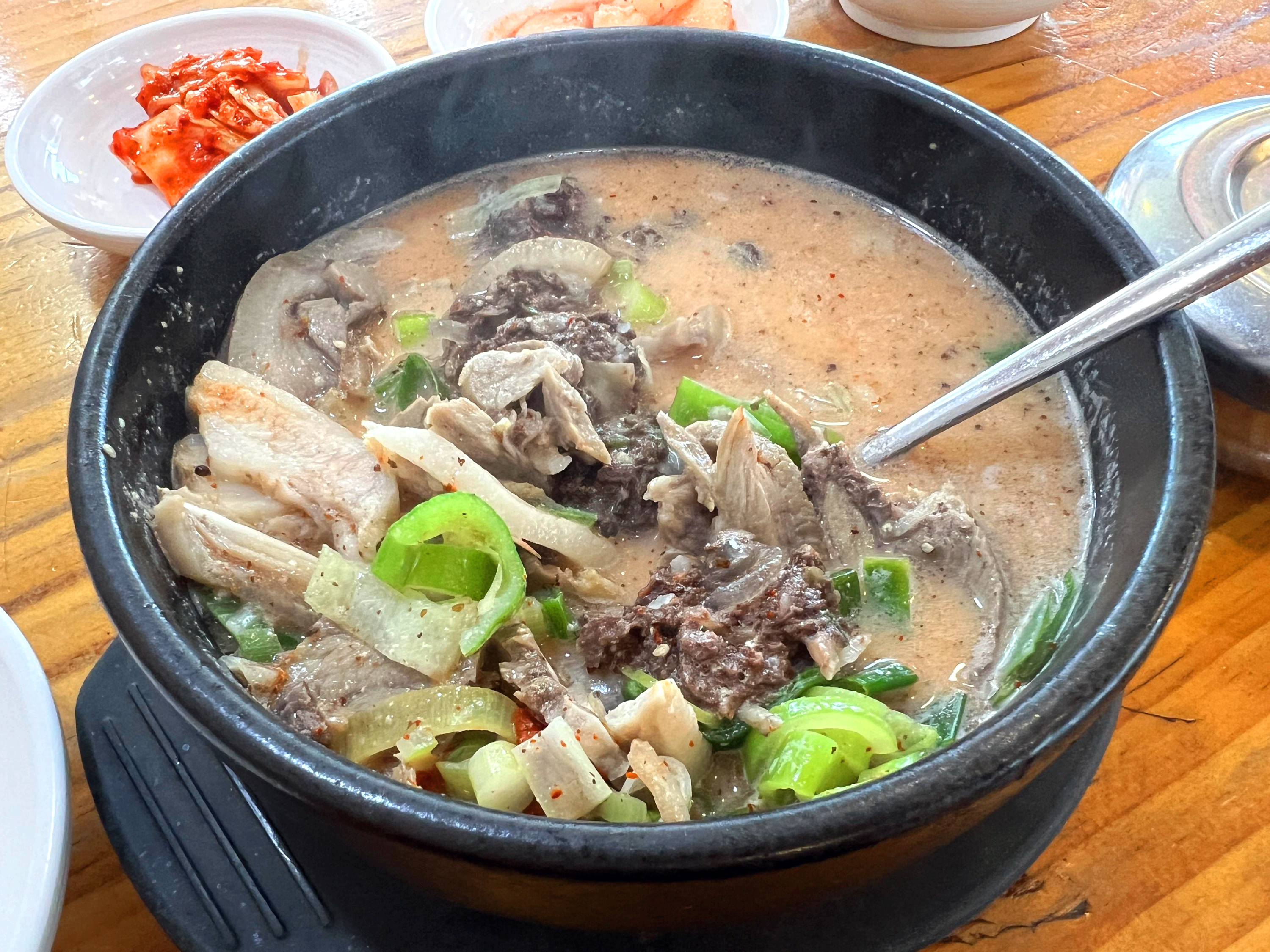 간을 맞추기 전에 한숟갈 먹어보니 국물맛이 끝내줬다. 지난번 광탄면 장군순대국에서 먹었던 국물만큼 괜찮았다.