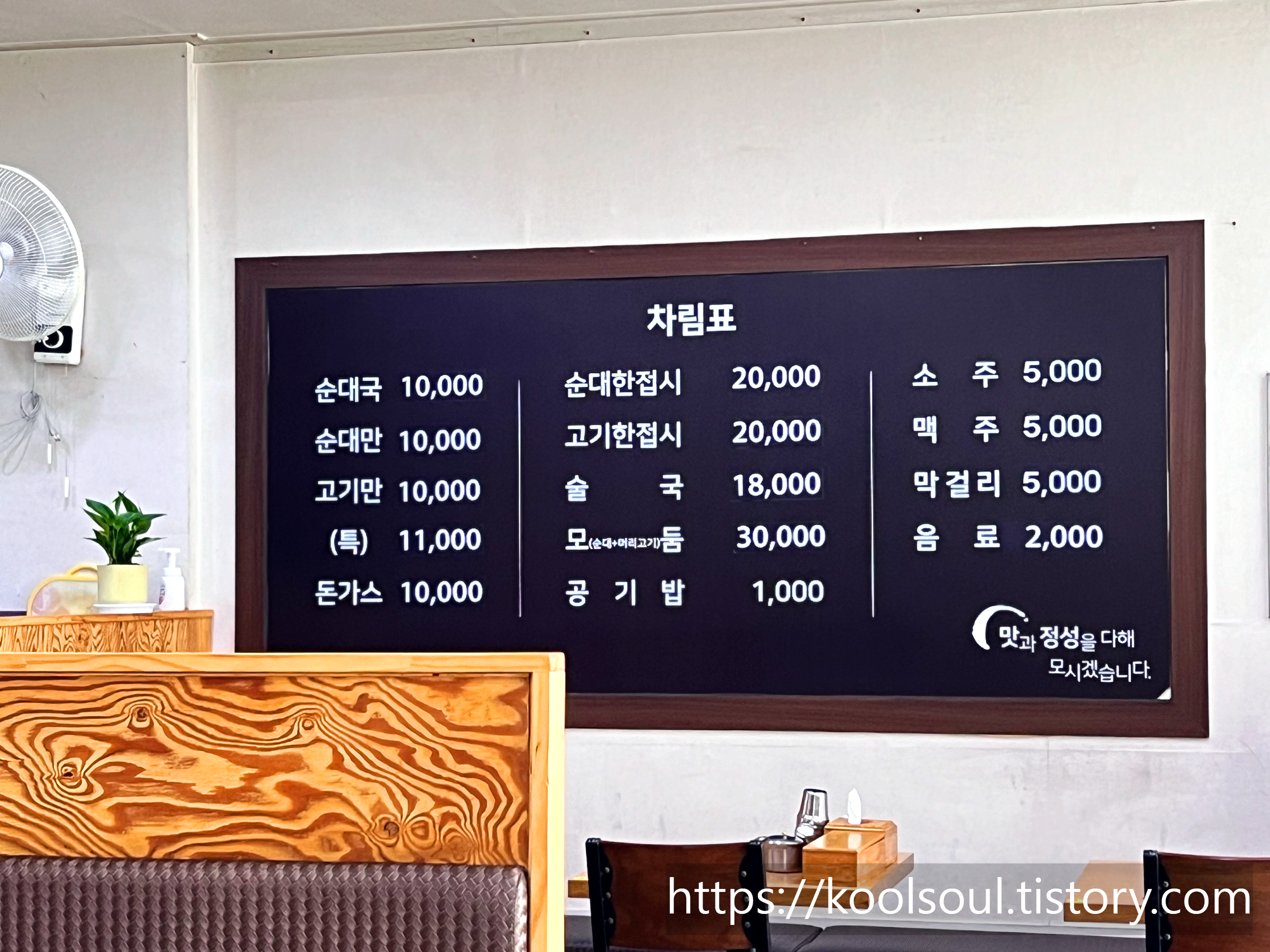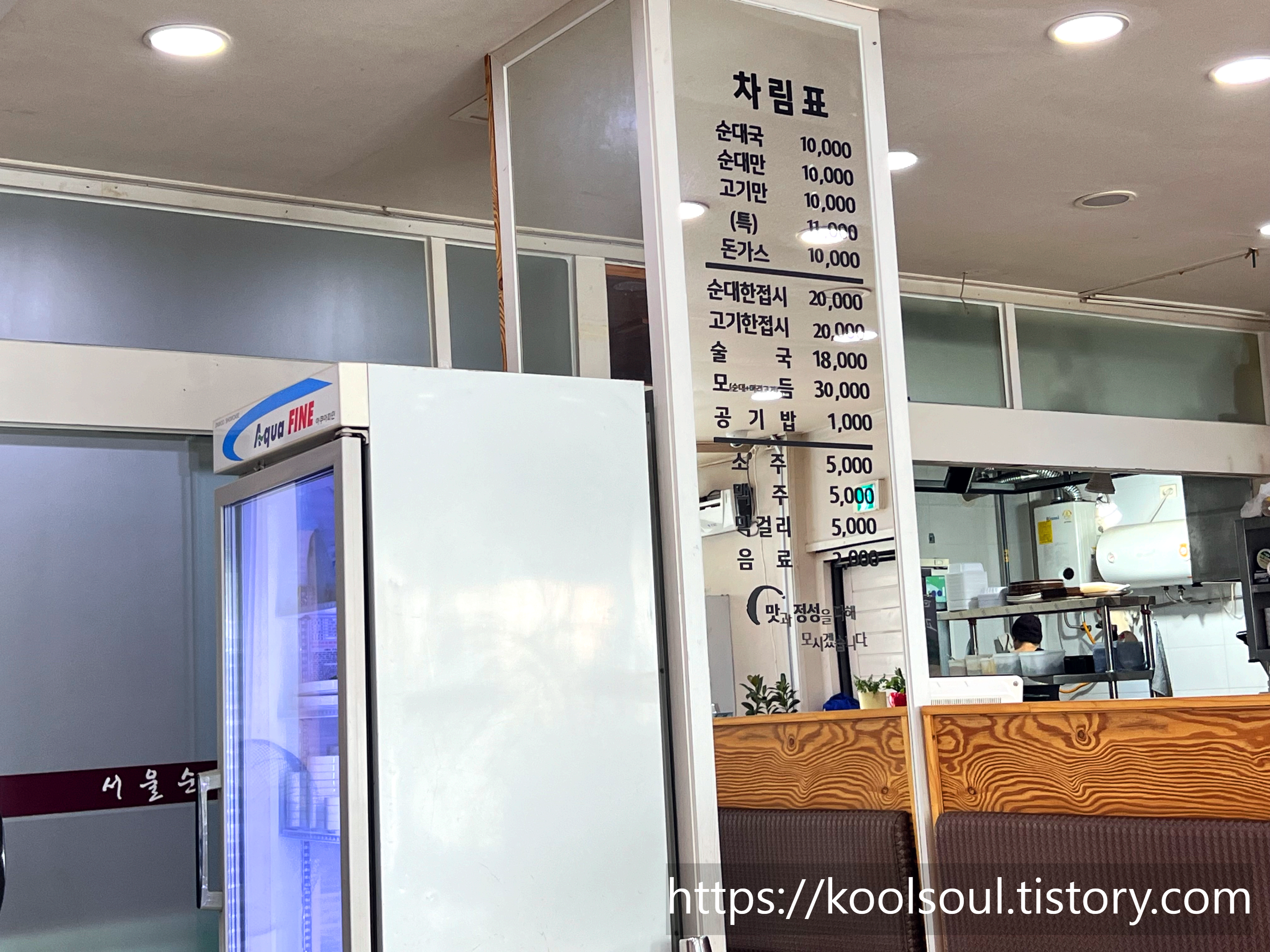 서울순대국의 메뉴판이다.